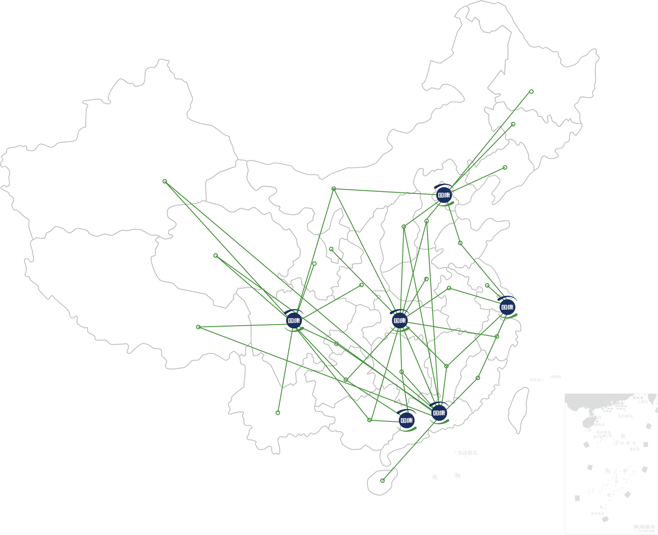 國康健康服務團隊分布在北京、上海、廣州、深圳、武漢、南京、杭州、成都、長沙等地區